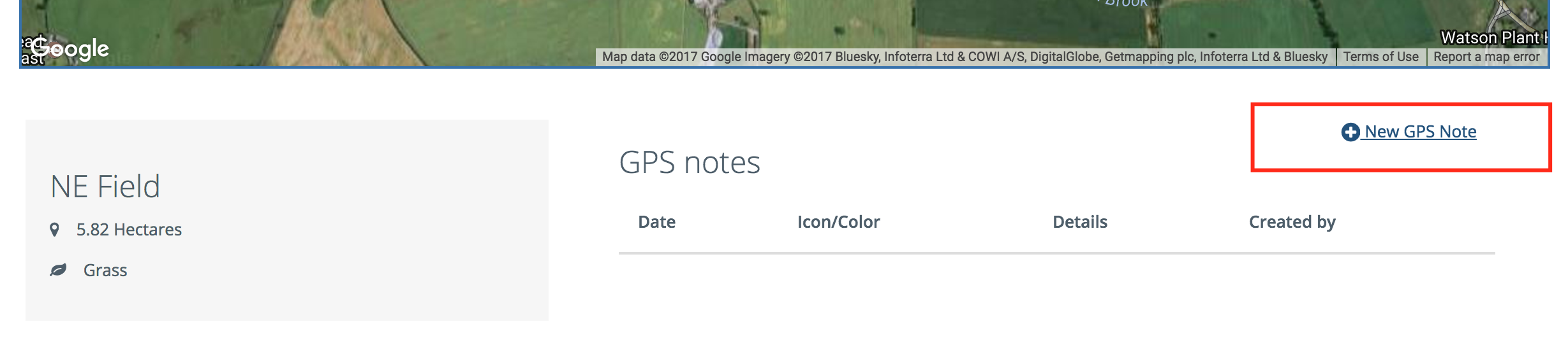 GPS Notes can help you and your team locate important points of reference within a field such as gates, drains, etc. You can also use them to mark areas within a field that need attention or to alert operators about field application directions.