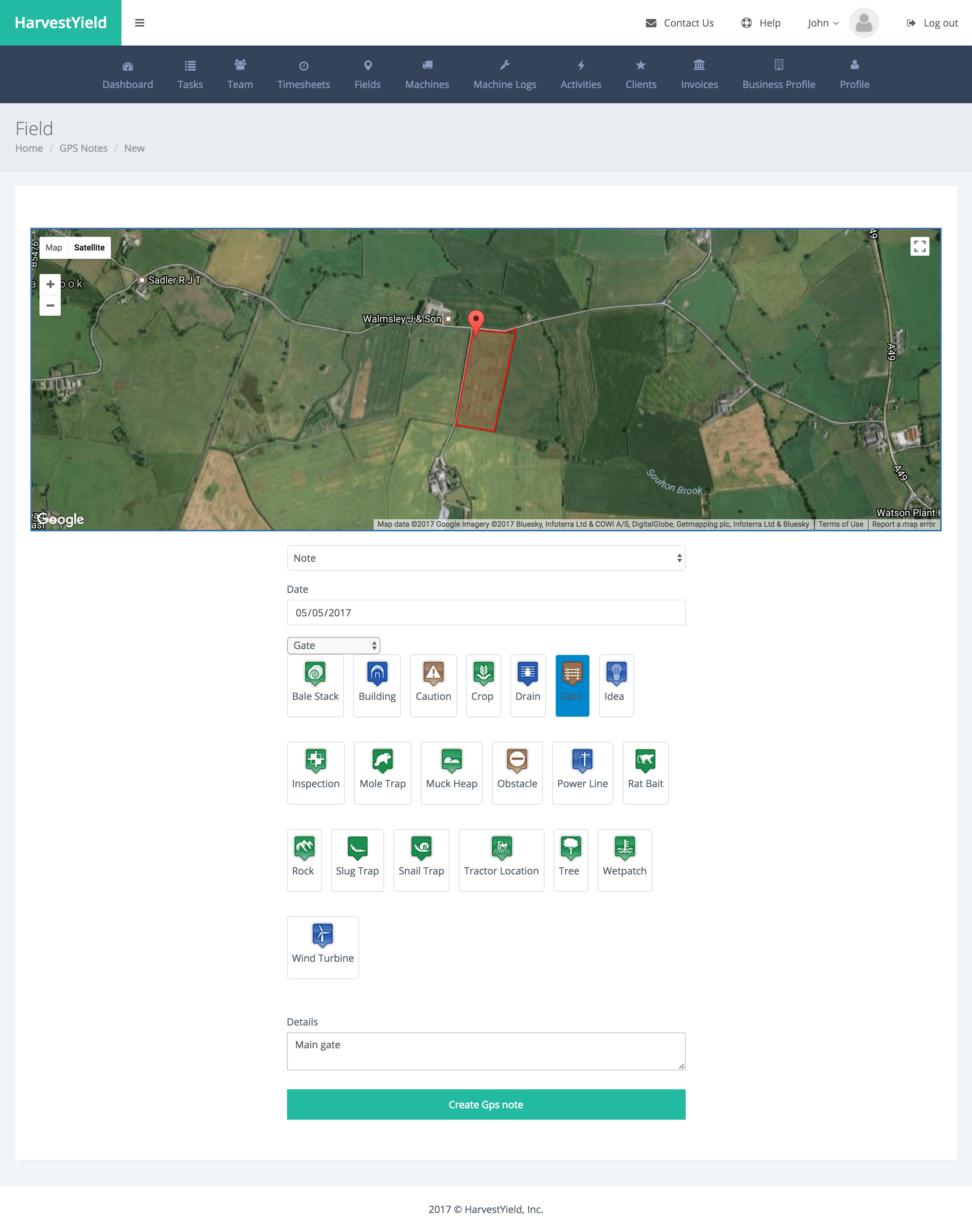 Type in "Main Gate" on the details field and click the "Create GPS Note" button
